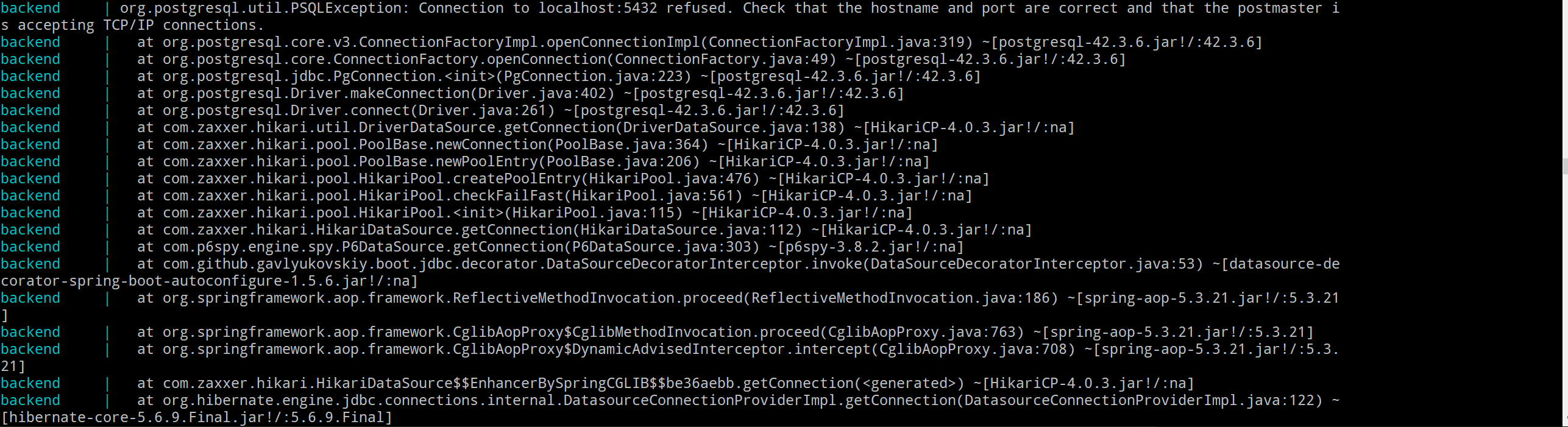 도커 컴포즈로 Spring Boot + PostgreSQL 다중 컨테이너를 띄워서 연결하던 중 발견한 오류